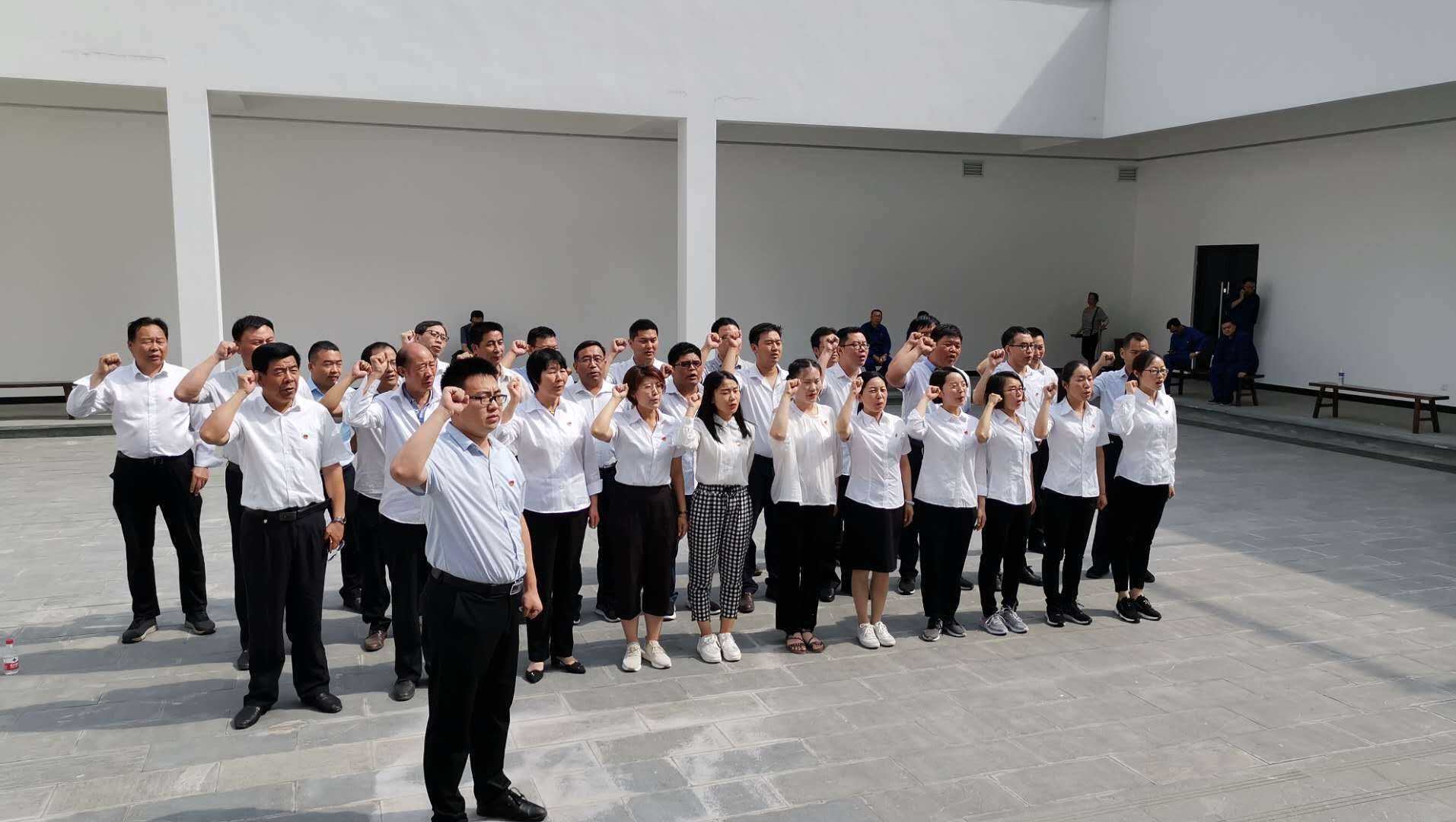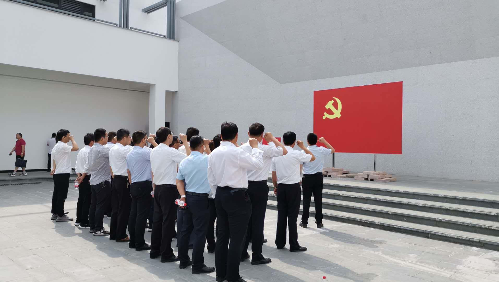 現(xiàn)場參觀學(xué)習(xí)結(jié)束后,全體黨員面對鮮紅的黨旗,集體宣誓,重溫入黨誓詞,堅定理想信念,提升思想境界。