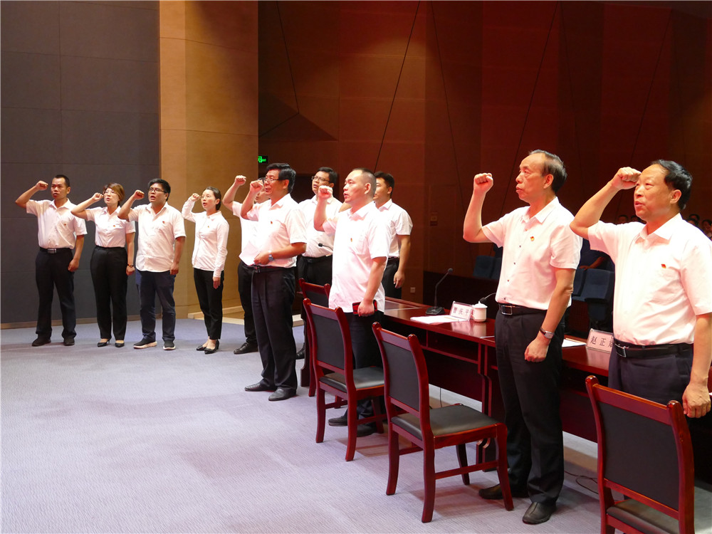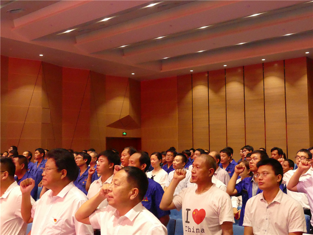 大會(huì)在雄壯的國(guó)歌聲中拉開(kāi)序幕。首先公司黨委委員、副總經(jīng)理郭日倉(cāng)作了《黨委工作報(bào)告》。報(bào)告總結(jié)了過(guò)去一年來(lái)的黨建工作,指出了黨建工作存在的不足,并提出了下一步工作的努力方向。公司黨委委員、鑄鍛公司副總經(jīng)理曹慶平宣讀《關(guān)于表彰2019年度優(yōu)秀共產(chǎn)黨員的決定》。大會(huì)為2019年度在公司各條戰(zhàn)線涌現(xiàn)出的10名優(yōu)秀黨員頒發(fā)榮譽(yù)證書(shū);接著舉行新黨員入黨宣誓和老黨員重溫入黨誓詞儀式,全體黨員舉起右手,握緊拳頭,面向黨旗,莊嚴(yán)宣誓“我志愿加入中國(guó)共產(chǎn)黨,擁護(hù)黨的綱領(lǐng),遵守黨的章程……”,錚錚誓詞響徹會(huì)議室。