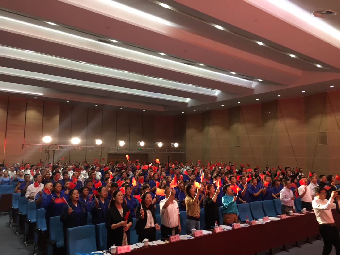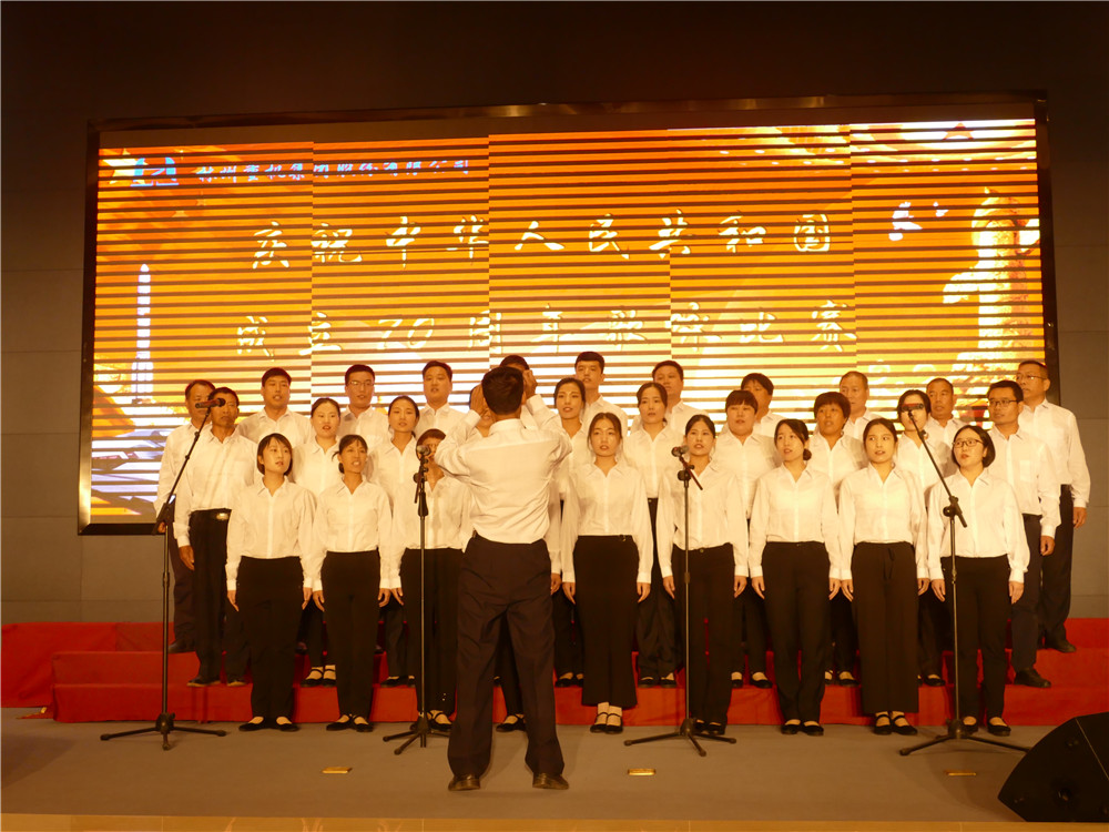 活動(dòng)在全體合唱《歌唱祖國(guó)》的歌聲中達(dá)到高潮。集團(tuán)公司主要領(lǐng)導(dǎo)登臺(tái)同全場(chǎng)員工舞動(dòng)起鮮艷的五星紅旗,共同歌唱祖國(guó),歌唱美好的新時(shí)代。