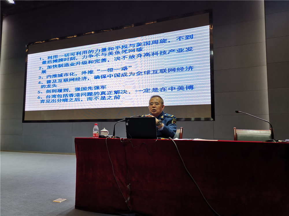 15日下午,喬良將軍在公司一樓多功能廳做了《從百年大變局看中美貿易戰(zhàn)》專題講座,公司中高層領導及管理人員、部分員工骨干300余人聆聽了報告。喬良將軍從中美貿易戰(zhàn)的深層次背景與本質、特朗普為何要發(fā)動貿易戰(zhàn)、特朗普面對的悖論、中國的對策與路徑四個方面進行了鞭辟入里、深入淺出的精彩講授。通過對中美貿易戰(zhàn)的熱點分析中,使大家對中國改革開放40年的偉大成就、中華民族的偉大復興及復興之路的戰(zhàn)略選擇有了全面和深入的理解。一方面,提升了全員的民族自豪感和對中華民族偉大復興的堅定信念;另一方面,堅定了公司開展民參軍業(yè)務,順應中國發(fā)展需求,實現軍工報國的決心。